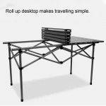 Folding Camp Table Black Multi Functional Carbon Steel Portable Roll Up