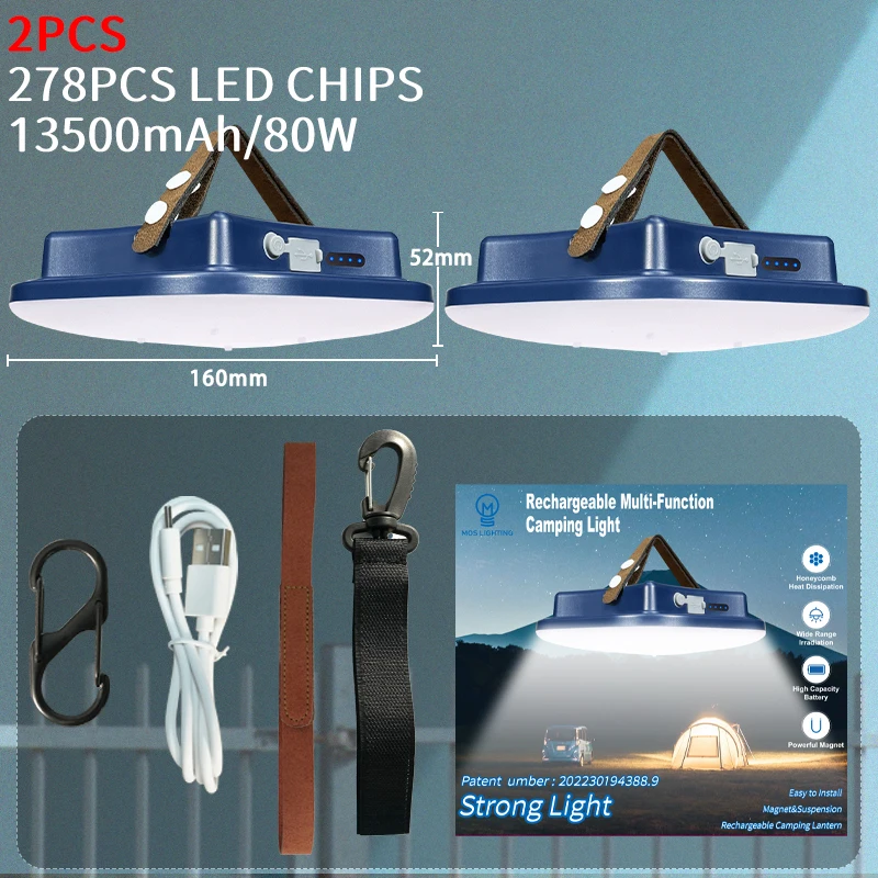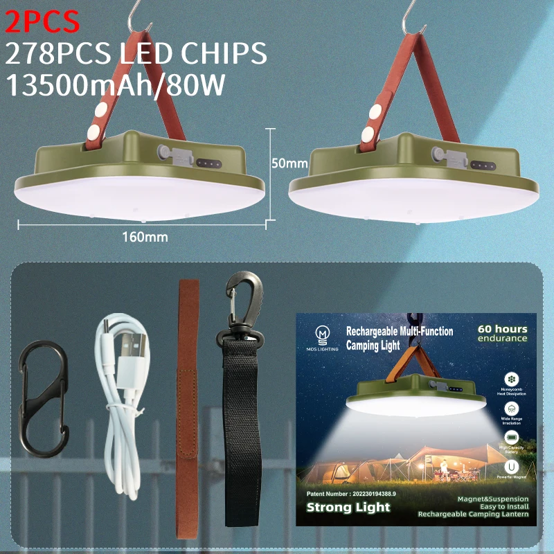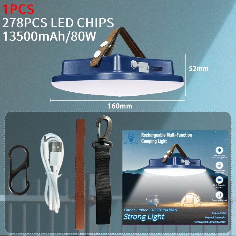 MOSLIGHTING 80W Rechargeable LED Camping Strong Light Magnet and suspension
